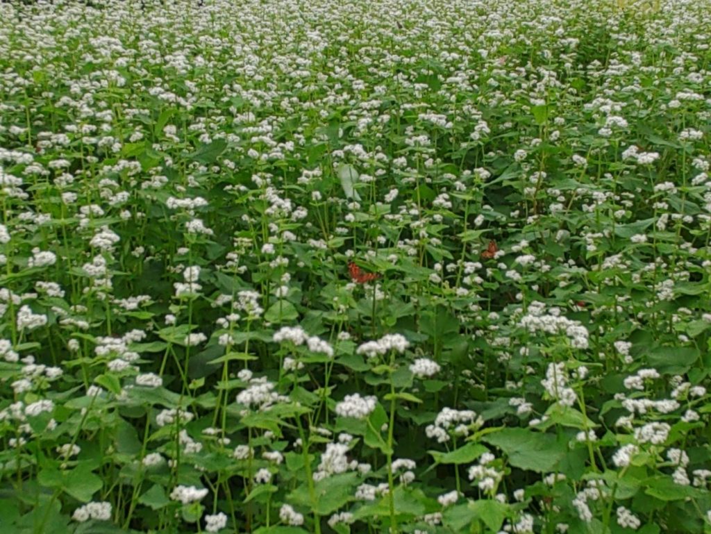 八月上旬に種を蒔いて、もう満開・・・秋に収穫します。